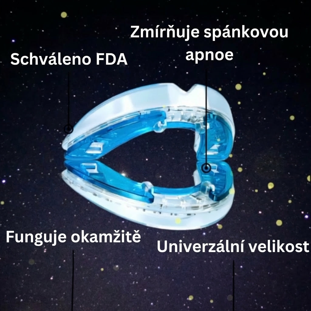 😴 Funguje tak, že jemně posouvá spodní čelist dopředu.
